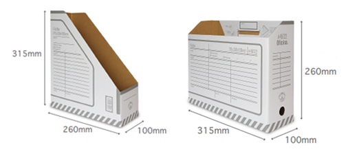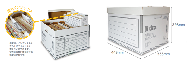 Oficina はスペイン語でオフィスの意味。快適なオフィスライフのためのインテリア雑貨を提供するブランドです。第一弾として、書類や小物をアーカイブするための理想的な収納ボックスを開発いたしました。 特徴1. 飾りたくなるデザイン 特徴2. 驚くほど丈夫! 特徴3. 積み重ね5 段までOK! 特徴4. 組立て、折り畳み簡単! 特徴5. 安心のリサイクル素材 単体でも組み合わせても使える機能的なボックスシリーズをご用意いたしました。 ① アーカイブボックスには、 ② ファイルボックスヨコ型と ③ ファイルボックスタテ型がどの組み合わせでも4 個ジャストサイズで入るように設計されています。