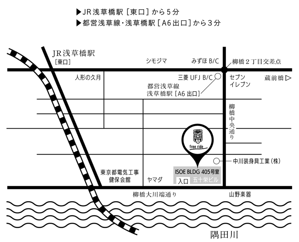 平素は格別のご高配を賜り厚く御礼申し上げます さて、このたび弊社は事務所を下記に移転し業務を行うことになりました 何とぞご高承の上、一層のお引き立てを賜りますようお願い申し上げます まずは、略儀ながら書中にてご通知かたがたご挨拶申し上げます 【移転先住所】 〒111-0052 東京都台東区柳橋1-29-7 ISOE BLDG 405室 株式会社フリーライド TEL 03-5829-6775 ※電話番号は変更ございません E-mail hello@freeride.co.jp 【業務開始日】 2022年5月26日(木)